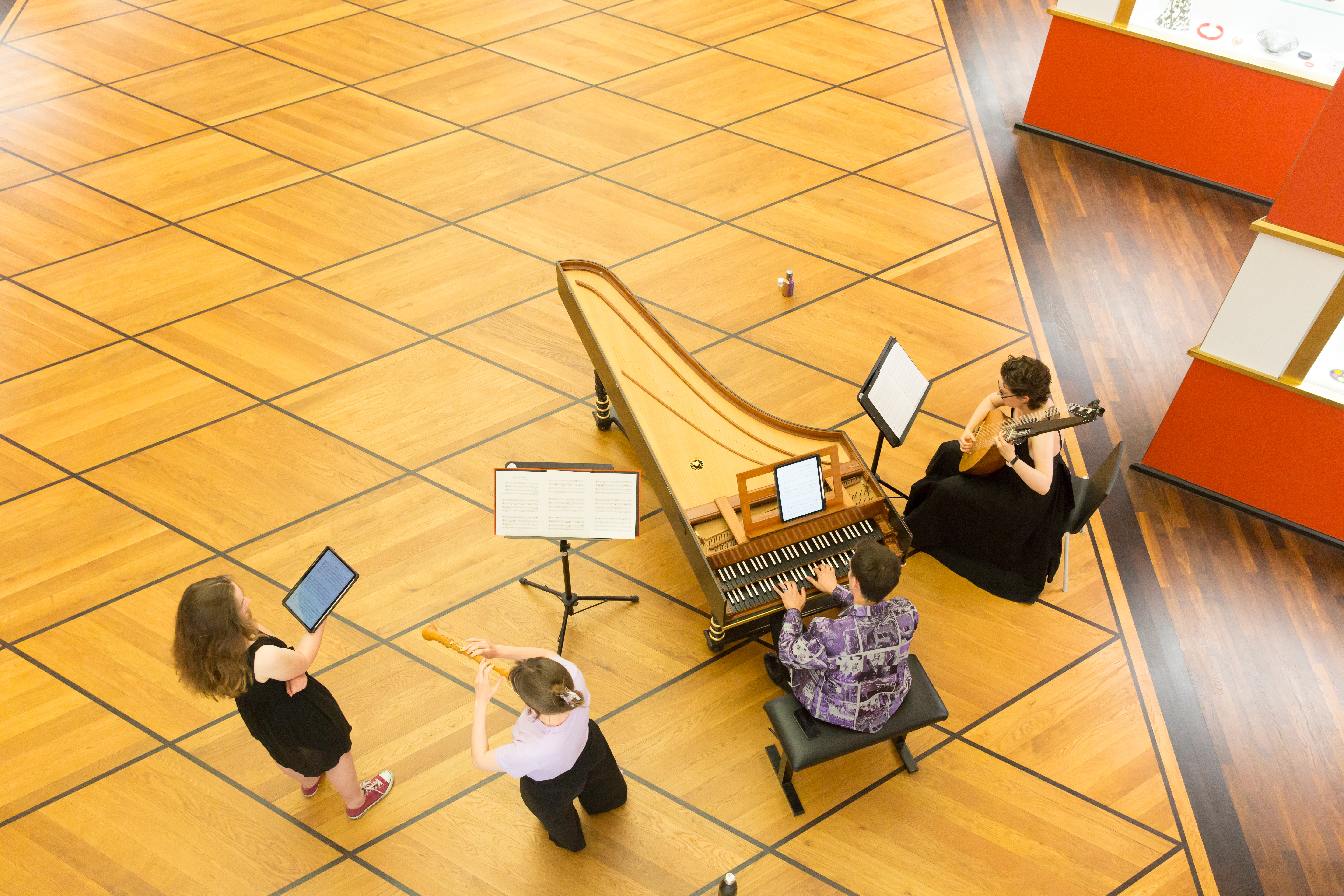 - Tasteninstrumente: Cembali, Hammerflügel, Orgel, Virginale, Clavichorde